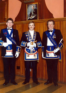 In December 2009 Bro. Nicholl passed the reins over to Bro. Scott Bogle, whose installation was performed by Past Masters Robert Watt and Neil Fraser. They was assisted on the day by Scott's father James Bogle PM Lodge Albert Edward No. 592 and uncle Robert Bogle PM The Lodge of Erskine No. 1566.